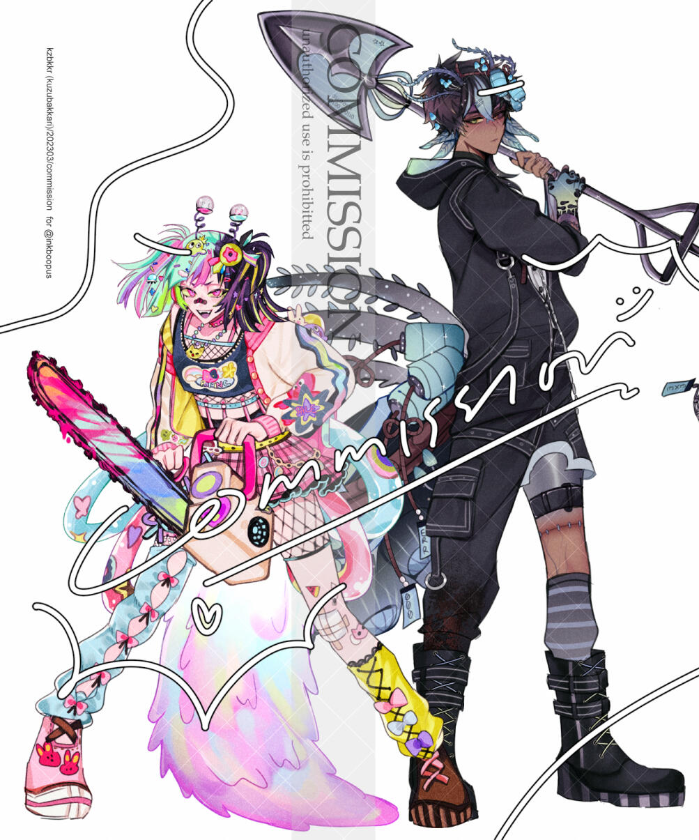 | HL, BL, GL pairings OK | Real life people, drastically different reference style (e. cartoons, JJBA style charas) | Commercial use commission, V-tuber model |